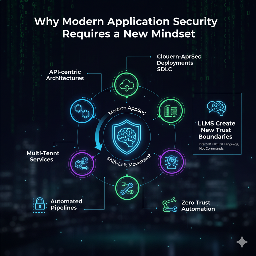 Modern application security spans the entire SDLC—from architecture decisions to runtime behavior. Traditional perimeter-based models no longer work in a world defined by: